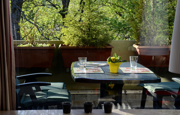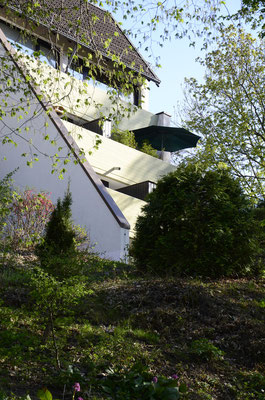 Durch die Bauweise des Hauses und die Lage der Wohnung sitzt man auf der Terrasse inmitten grüner Baumwipfeln und ist vom frühen Nachmittag bis zum Sonnenuntergang in Sonne getaucht.